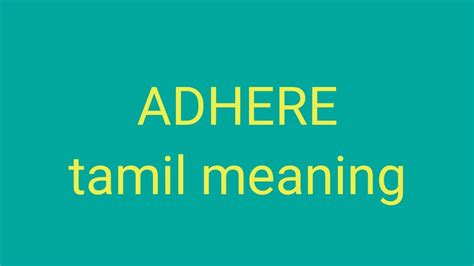 Before we jump into the Tamil translation, let’s quickly recap what “adhere” means in English. Generally, “adhere” means to stick to something physically or to follow a rule or belief. Think of it like glue sticking two things together or sticking to a set of principles. To truly grasp its essence, consider these key aspects: physical attachment , commitment to principles , and consistency in behavior . These three pillars form the foundation of understanding “adhere.” For instance, a sticker adheres to a surface, or a person adheres to a strict diet. Understanding these nuances is super important before we explore its Tamil counterparts. So, with this foundation in place, we can now move on to unraveling the Tamil equivalents and seeing how they fit into everyday conversations and formal contexts.