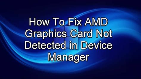 AMD Graphics Card Not Showing Up in Device Manager: A Comprehensive Guide