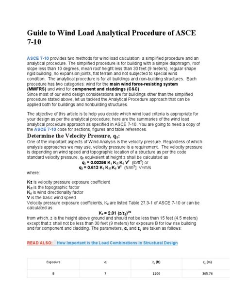 Alright folks, let’s get down to calculating the actual force of the wind, which is represented by Velocity Pressure (qz) . This is a critical step in ASCE 7 wind load calculations , because it’s the precursor to determining the actual pressures on your structure. ASCE 7 provides a formula to calculate this, and it looks something like this: qz = 0.00256 * Kz * Kzt * Kd * V^2 (in SI units, it’s qz = 0.613 * Kz * Kzt * Kd * V^2). Let’s break that down: