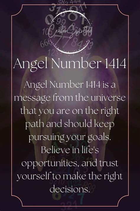 Furthermore, 1414 can indicate a period of stabilizing your current situation while simultaneously opening doors to new opportunities . It might mean that the hard work you’ve been putting into your existing projects or relationships is about to pay off, providing a sense of security that then allows you to explore new avenues. Or, it could be a call to organize your current affairs so that you are well-prepared for the new ventures that are coming your way. It’s about creating harmony between your present reality and your future aspirations. This number is a cosmic pep talk, reminding you of your power to create, your resilience, and the importance of disciplined action. Pay attention to the opportunities that arise, believe in your capacity to achieve them, and don’t shy away from the effort required. Your angels are with you every step of the way, cheering you on as you build your dream life.