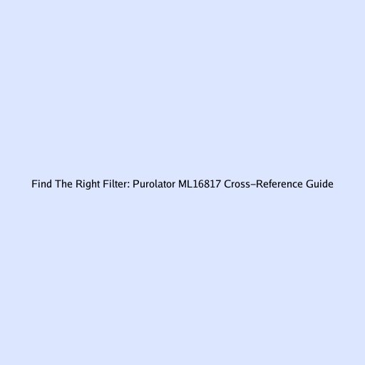 Find the Right Filter: Purolator ML16817 Cross-Reference Guide