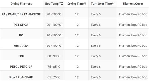 • Temperature : The ideal drying temperature for Bambu PETG is generally between 50-70°C (122-158°F). Always check the manufacturer’s recommendations for your specific filament, as some brands may have slightly different requirements.