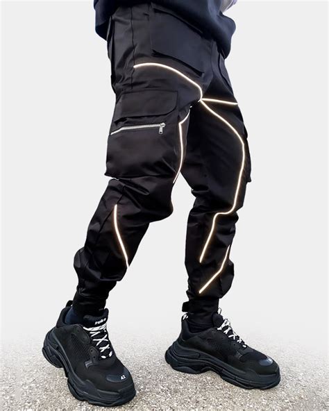 Want to amp up the streetwear cred? Combine your pants with an oversized graphic tee or a bold-colored hoodie . Layer it with a bomber jacket or a varsity jacket for that extra dose of urban cool. Finish the look with chunky high-top sneakers or stylish combat boots . This is the vibe for concerts, festivals, or when you just want to make a statement. The reflective details will truly come alive in low-light environments, ensuring you stand out from the crowd. Accessorize with a beanie, a crossbody bag, or some layered necklaces to complete the look. This ensemble is all about expressing your personality and embracing the boldness of modern streetwear, where comfort meets avant-garde design. The interplay of textures and colors will create a visually dynamic outfit that’s both comfortable and fashion-forward.