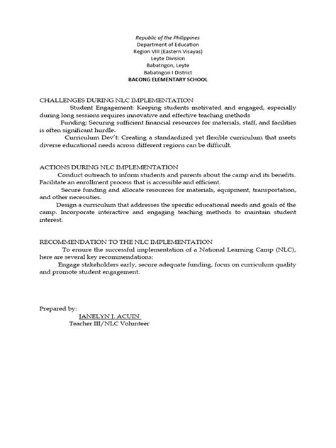 NLC Implementation: Challenges, Actions, And Recommendations