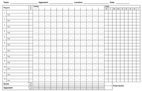 When choosing a template, think about what information is most important to you. Do you need a lot of space for notes and comments? Do you want to track advanced stats like on-base percentage or slugging percentage? Consider the age and skill level of the players you’re scoring. A simple template might be best for younger players, while a more detailed template might be useful for older, more experienced players. Don’t be afraid to try out a few different templates to see what works best for you.