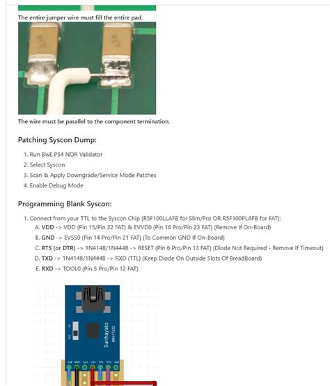 • Connect your hardware flasher to your PS4’s Syscon. This usually involves soldering wires to specific points on the Syscon chip or using a dedicated adapter.