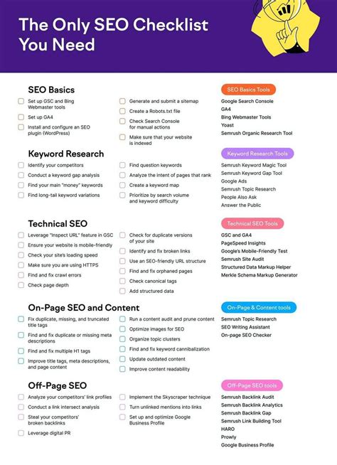 We’ll be covering everything from keyword research to on-page optimization, technical SEO, and off-page strategies. Each of these components plays a vital role in your overall SEO performance. Neglecting any one area can hinder your progress. So, this checklist is designed to be comprehensive, covering all the nooks and crannies of SEO to ensure you’re not missing any crucial steps. It’s like building a house; you need a strong foundation, sturdy walls, and a well-designed roof. Each element contributes to the overall integrity and appeal of the structure. Similarly, SEO requires a multifaceted approach, integrating various tactics to create a robust online presence that search engines love and users trust. We’re going to break it down into digestible sections so you can tackle each part systematically. You don’t need to be a tech wizard to implement most of these strategies, but a willingness to learn and a commitment to consistency are key. Let’s get started on building that digital empire, one optimized page at a time!