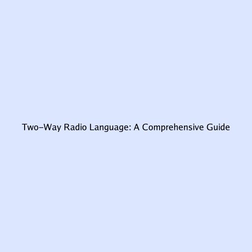 Two-Way Radio Language: A Comprehensive Guide