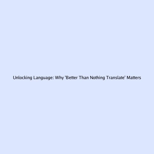 Unlocking Language: Why 'Better Than Nothing Translate' Matters
